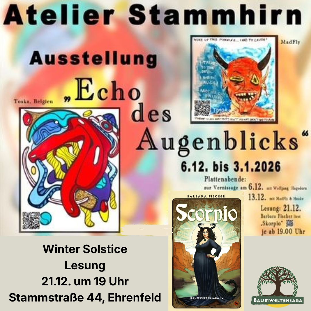 Barbara Fischer, Literaturwissenschaftlerin, Ethnologin und Schöpferin der Baumweltensaga, liest aus dem vierten Roman der Baumweltensaga-Serie: Nach „Lilith“, „Freya“ und „Frigg“ fährt nun „Scorpio“ ihre Scheren aus.…